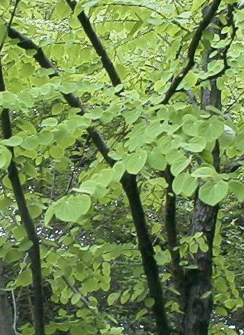 カツラの若葉と若い実(針ノ木岳への途中で橋口さん撮影、2008.7.19)