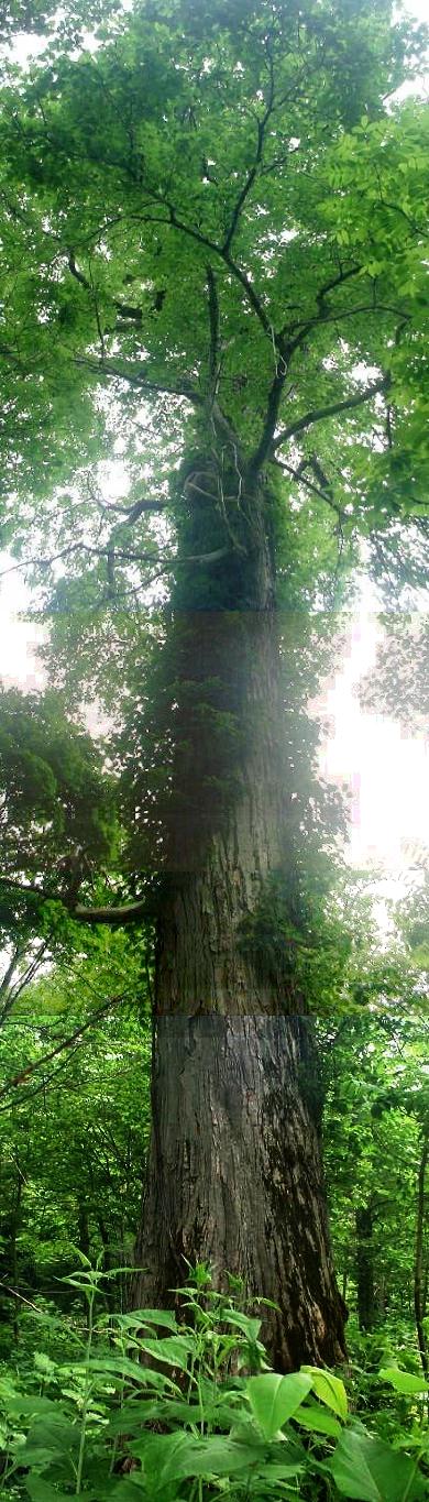 Hiroaki.Sさんが知床でも珍しいドロノキの巨木の写真を送って下さった。ドロノキとは可哀相な名前であるが、その由来は泥地に生えるからとも、成木の幹が泥色であるからとも、また、材が泥のように軟らかいからとも言われる。ヤナギ科の木で巨木に育つ。ヤマナラシなどと同じく、花の後の5-6月に綿毛を周囲一杯に飛ばす。以下はHiroaki.Sさんの文章です。 ********************************************************************** 北海道斜里町(奥蘂別川中流域)のドロノキ Hiroki. S (撮影日 2008.6.29) 知床半島に現存する数ある巨木の中で、最も太くて大きな木がどこにあるのかは知りませんが、今まで出会った巨木の中で、ずば抜けて太い幹を持ち、見上げていると首が痛くなるほど背が高く、非常に印象的な巨大なドロノキをご紹介させていただきます。 国道334号線から奥蘂別川右岸沿いの車道をしばらく進みます。防鹿柵を越えると直ぐにゲートがあります。これより奥は車両の進入はできません。 このゲートから約5km進んだ地点にある橋を渡って500mも歩くと、明瞭に続いていた林道は完全に笹薮に覆われて不明瞭になります。ここからは標高約245m付近にある二股を目指して川沿いに歩きます。 そのドロノキは二股よりも少し手前の右岸側に聳え立っています(写真1、2)。周囲にはこれほど大きな木はありませんし、非常に背の高い巨木なので見落とすことはないと思います。 近くに寄ってみると、しっかりと地面に根付いた幹が、想像以上に太いことに驚かされるのではないでしょうか。胸高幹周りは約6.95mあります。 今では笹薮に覆われ、橋が落ちてしまって車の通行はできませんが、このドロノキがある二股から少なくとも2km上流までは林道があります。過去には上流から次々と伐採された木材を運んだトラックがこのドロノキの傍を走り抜けて行ったと考えられます。 恐らくこのドロノキは経済的な価値がないと判断されて切り残されたのでしょう。この場所に根を下ろしてから、今まで洪水のように膨れ上がった河川水に何度も根元を洗われたことでしょう。今まで生きてきたこれまでの長い年月を想像しながら、これからも生き続けて欲しいと強く願わずにはいられません。 なお、入林の際は、あらかじめ網走南部森林管理署(〒099-3632 斜里郡小清水町字小清水656-1電話(代表):IP:050-3160-5775 NTT:0152-62-2211)までお問合せ下さいますようお願いします。 ********************************************************************** (註) ドロノキの若木では幹に横の筋が入るが、巨木になると縦の筋が目立つようになると言うことなので、ドロノキの同定でよいと思われるが、葉の写真と初夏の綿毛の写真があれば同定が決定的になろう。 |