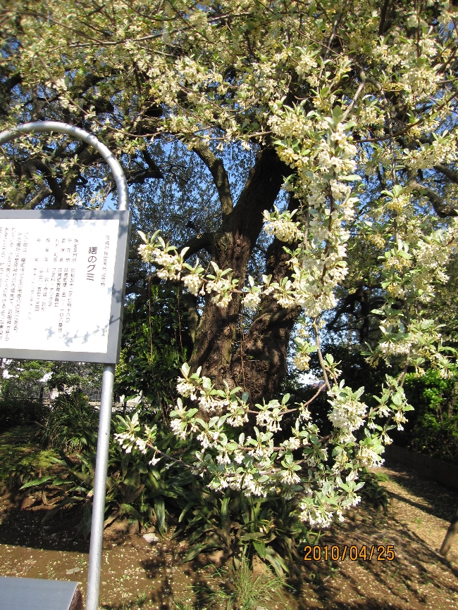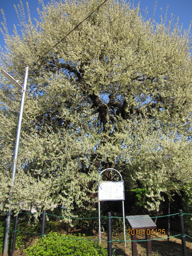 大学の同期会が毎年京都で開かれる。北川さんも私もよく出席している。皆さん社会で大活躍?した後、今は自適の生活を送っている。北川さんは茨城県在住だが、近くにグミの巨木があると以前から伺っていた。その巨木の四季を数年かけて撮ってくださった写真がようやく届いた。労作である。 グミは一般的には低木で、せいぜい2m程度の木と認識していたが、この木は将に別格である。樹高10m、幹周3.3m(主幹2.4m+分岐の合計)もある。茨城県の天然記念物に指定されている。グミは巨木になると認識しなかったのか1991年の環境庁調査には載っていない。この木はナツグミで、4月に花が咲き、6月には赤く熟して食べられる。こんなに大木になっても、隅々まで沢山の花を付け、実を成らせる。大したものである。 グミのある場所はかつて大室地区にあった室崎神社の馬場先(馬止めの場所)で、悪霊が村に入らないようにさえぎるために道祖神を祭っていた。グミの木を焼くと死人を焼くような匂いがするので悪霊が入らないと考えられていた。 グミのある曙町へは、常磐線土浦駅からJRバスが1日数本出ているが通勤時間帯が中心で8時半から13時はバスがない。バス停の所を南に入って住宅街を300mほど進んで、突き当たったら左に折れるとグミの木が見える。 |