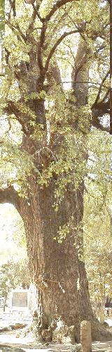 根周り7.6m、目通り幹周り6.45m、樹高25.5mで、1639年の東照宮再建に際して 3代将軍家光が植えたと伝えられるので、樹齢は360年となる。 幹周りもさることながら、枝の太さが印象的である。ずっと高いところに 巨大な3本の枝が伸びている様は見事である。都の天然記念物である。