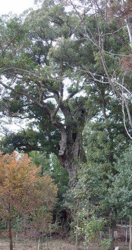 瀬川さんの旅がいよいよ九州に入る。最初は熊本県菊池郡泗水町のイチイガシの巨木、「村吉の天神さん」である。熊本県にはイチイガシの巨木が多く、玉名郡の「上十町のイチイガシ」は幹周8.53mで全国2位である。その他にも上益城郡と球磨郡に8mを越す巨木があり、「天神さん」は熊本県では小さい方にあたる。とは言っても、根上がりの見事な姿は圧巻だ。昔、隣接地に村吉小学校があり、子供達はこの根っこでよく遊んだということである。 熊本市北部で3号線から北東に伸びる387号線に入って、12kmほど走ると泗水町である。合志川を渡ったら、直ぐに右折して堤防沿いに東へ2kmを走る。橋を渡ってきた道と交差するところを左折すると、村吉の集落である。 |