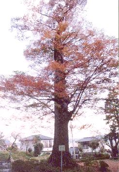 今年はケヤキの紅葉も冴えなかったが、この写真のケヤキは綺麗である。 環境庁調査には載っていないが、解説板によれば、樹高20m、目通り幹周り4.2mで、 樹齢は400-500年とある。