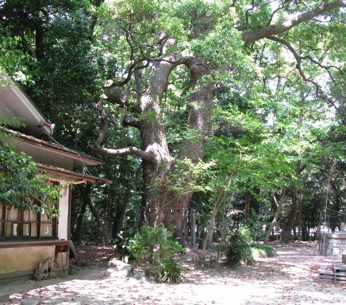 高校同窓のTossyさんは、有名なブログの持ち主で、花日記「今日の花」の美しい写真は広く知られている。そのTossyさんから、日野神社の楠の巨木の写真を送って貰った。日野神社は阪急西宮北口駅の東1km、大阪側から来ると、阪急電車が武庫川を渡ってすぐに右手の車窓から見える森の中にある。この森は「日野神社社叢」として天然記念物に指定されており、照葉樹林の面影を残す数少ない森である。この森でひときわ大きいこのクスは樹高20m、幹回り4.2mで、兵庫県の天然記念物に指定されている。 阪急西宮北口駅を北に降りて、西宮電車車庫の北側を迂回するようにして大阪側に戻り、線路に沿った道を行くと左手に日野神社の参道が見える。 |
