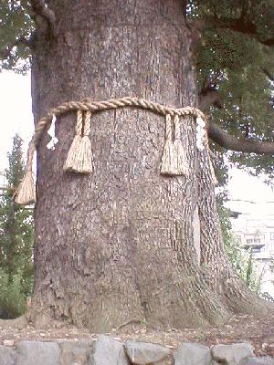 京都府で2番目に大きいクスノキとされる。京都東大路の今熊野でバスを降りると目の前に新熊野(いまくまの)神社があり、鳥居の南に鬱そうと聳えているのが大樟である。「大樟さん」はご神木で信仰の対象となっている。お賽銭箱があり、その横に大樟の一部とおぼしき枝が立ててあり、「両手でなでてから木の穴にも手を入れて下さい」とある。多くの人々が木に触れるのであろう、表面はツルツルになっている。 新熊野神社は後白河上皇によって永歴元年(1160年)に創始された。現在の本殿は1673年に造営された物で、熊野本宮の証誠殿と同じ造りになっており京都市の文化財に指定されている。 樹高26m、幹周り6.7mで、後白河法王のお手植えといわれるから、樹齢840年程度になるが、樹勢は旺盛である。 |