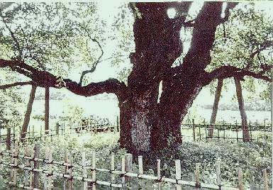 ヤマグワの日本第一の巨木です。樹齢 1500年、樹高 11m、幹周 5m 車なら、関越沼田を降りて、高速側道を北上、5,6分、右折、坂道を500m。 あるいは、JR上越線沼田駅よりバスを利用しても行けます。 ひとけの感じられない民家を回り込んだところにありました。桑の木としての 大きさもさることながら、自然の均整のとれた樹形は心和みます。そういえば、 見慣れた桑の木、いつもGIカットみたいだったように思います。周囲のこんにゃく と桑畑の生命力そのものの緑とのコントラストが、写真で今一歩でていないのが 残念です。 この辺り(桐生、足利)は、戦前までは絹の一大産地であり、養蚕のための 一面の桑畑であったと想像されます。その中にあって、この巨木は桑の守護神 のような存在だったのでしょう。 |