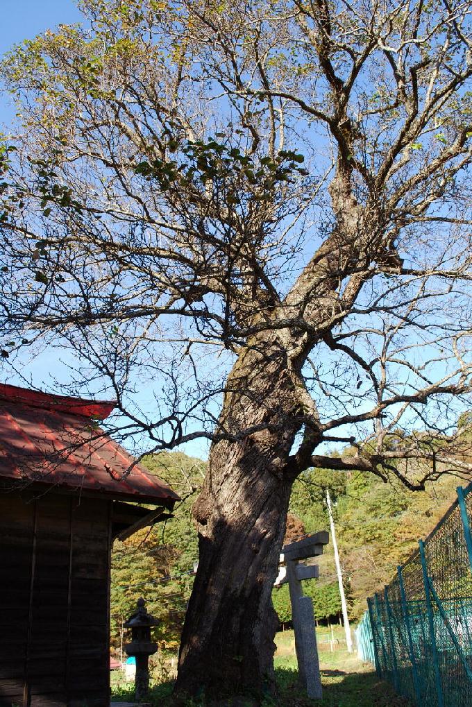 吾妻渓谷に紅葉を見に行った帰りに立ち寄ったと、熊ちゃんから「稲田のヤマナシ」の迫力ある写真を送っていただいた。この年の吾妻渓谷の紅葉は今ひとつだったようだが、ヤマナシは収穫だったのではないだろうか。春には木一杯にナシの白い花が咲き、見事だと思われる。是非その写真も送っていただきたいものである。以下は熊ちゃんによる解説です。 「ヤマナシは、国道145号線を沼田方面に向かい、郷原信号を右折」して58号線(中之条吾妻線)を南に進んだ、大戸地区(稲田)にあります。ヤマナシは、畑の中にある稲荷神社境内に立っていました。幹が少し傾いています。葉がほとんど落ちたヤマナシを根元に立って眺めると、ごつごつしていて、少しねじれている幹から、荒々しさと逞しさが伝わってきました。4月下旬から5月上旬という花のの時期に、また見てみたいものです。 巨木の近くが東京電力の所有地らしく、金網の柵が巡っていました。写真を撮るのには本当に邪魔でしたが、どうにもなりません(笑) 所在地:群馬県東吾妻町大戸754-1 幹周り 3.55m、樹高 17m、推定樹齢 300年 群馬県指定天然記念物」 **************************************************************** 徒歩で行くには、JR吾妻線の郷原駅で降りて、大戸行きの関越交通バスに乗って稲田下車すればよい。バスは1日に5本程度出ている。 |
