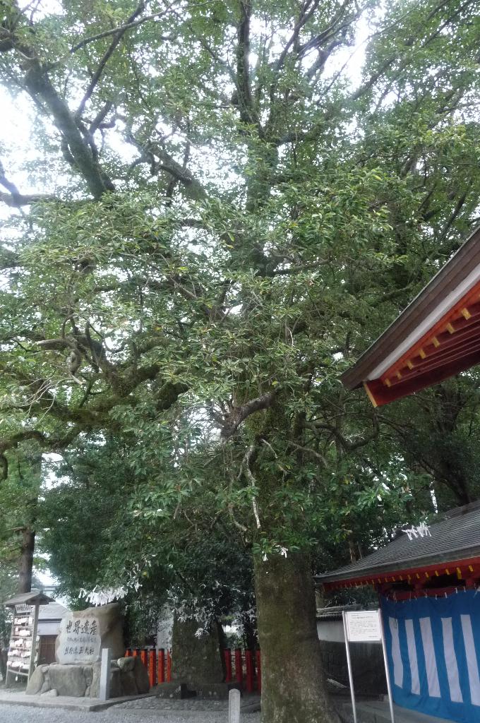 ナギで有名な熊野速玉大社にもう一本、新宮市の指定天然記念物となっているオガタマノキがある。この木の名前が、神の魂を招く「招霊(オギタマ)」に由来しているので、神社に多く植えられている。西日本以西に分布する暖地性のモクレン科の木で、春に白く可愛い花を付ける。ミカドアゲハはこの葉が好きである。旅行のついでに巨木に立ち寄って、その写真をよく送って下さる新田ご夫妻からいただいた。 この木は、樹高は21m、幹周り1.65mで、オガタマノキとしては大きい。和歌山県で最大のオガタマノキは、田辺市の住吉神社のもので、樹高24m、幹周3.8mである。因みに、日本最大のオガタマノキは長崎県小長井町にあり、斜面に生えてはいるが幹周9.1mである。直立したものでは、鹿児島県川内市にある「永利のオガタマノキ」が幹周8.4mで、立派である。共に国指定の天然記念物となっている。鹿児島県大口市の「大口のオガタマノキ」もその幹周は9.0mである。 |
