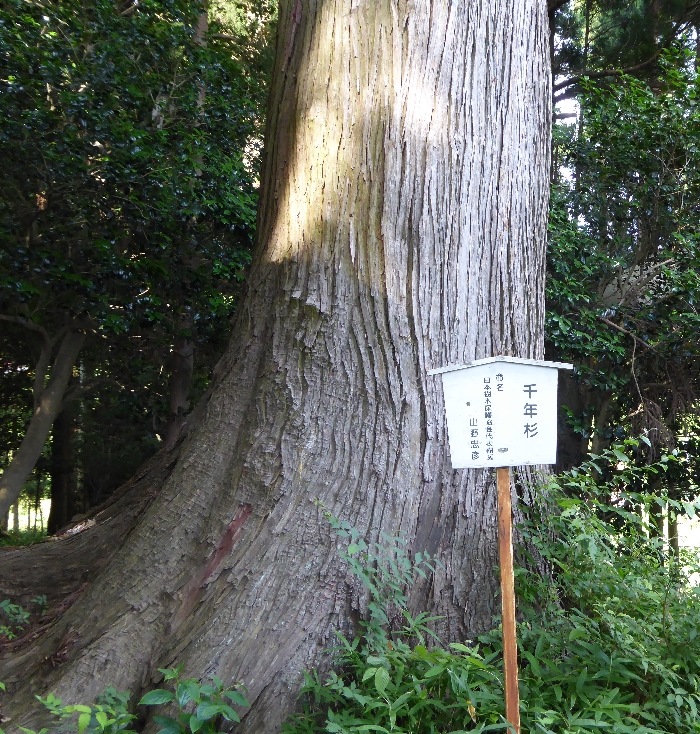 澁川さんは娘婿のお父様で、いつも「木々の移ろい」を応援して下さる。今回も、三陸の復興の様子を見に三陸鉄道沿線を巡られた際に、三陸大王杉と一本ポプラ(こちらは改めてご紹介します)を写して、丁寧な解説と共に送って下さった。なんとも嬉しいことである。写真も上手で、迫力満点である。以下は澁川さんからの説明文です。 「樹齢7000年と地元では言っているようです。現に城跡の説明書にもそのような記述が見えます。インターネットで調べた限りでは、正確な樹齢は記載がないようです。 1500年位という記述もあります。とにかく大きく、隣にあるいわゆる千年杉との比較でもその巨大さが際立っています。中央にこぶのようなものができていて薄桃色になっているのが特徴的です。位置がわかっていれば、三陸鉄道南リアス線三陸駅(大船渡市盛駅と釜石駅のほぼ中間)からも見ることができます。 駅から600mだそうです。道路からかなり急な石段を登ったうえの八幡神社の祠横で、今回の津波の影響はありません。駅からの近道になる八幡神社の参道の下の石段は地震で崩れて今でも通行禁止になっており、少し先まで行って戻る形になります。」 −−−−−−−−−−−−−−−−−− 最下段に地図で示したように、三陸大王杉のある地域の地名は「杉下」となっており、これは、大王杉の最盛期には村全体が杉の下にあるような印象だったことを指しているのであろう。八幡神社の後ろは小高い城跡で、「本丸城趾」とされている。南北朝時代の1334年から1392年まで、南朝に属した多田左近将監が在住していたといわれる。 1991年の環境庁調査によれば、三陸大王杉は樹高20m、目通り幹周11.6m、樹齢1500年と推定され、岩手県最大の杉であり、大船渡市の天然記念物に指定されている。この杉は真っ直ぐに伸びる通常の杉とは異なり、下部から太い枝が分枝する「裏杉(芦生杉)」と呼ばれる種類で、日本海側で多く見られる。大王杉は厳しい自然環境などでかなり痛んでいたが、平成2年に樹木医による大規模な蘇生外科治療を受けた。その治療跡が下部に残っているが、今はかなり元気を取り戻しているようである。 なお、八幡神社の社叢には三陸大王杉以外に、樹高30mの杉が2本あり、幹周は4.5m(千年杉と命名されている)と4.2mである。千年杉は下段に写真がある。 |
