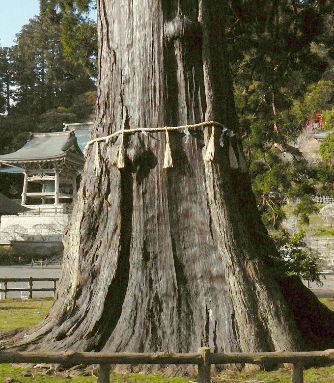 千葉県最大の巨木「清澄の大杉」は9年ぶりの登場である。田中さんと小森さんから写真を送っていただいて以来、是非訪れたいと何度も機会を狙ったが、東京から房総半島東海岸は遠すぎて、出張の足を伸ばすことが出来なかった。今回、千葉大の西川先生ご親戚の「巨木探勝グループの旅」に参加させていただいて、ようやく思いを叶えることが出来た。車で行くと、千葉県第2の巨木「環の大楠」も比較的近くにあるので、千葉県の1位・2位の巨木を一挙に見るという豪勢な旅となった。 清澄寺の山門に着くと、門を通して「清澄の大杉」の巨大な幹が拝めるという好位置に大杉が立っている。門をくぐると、前方にその巨大な全体像が姿を現わす。遠くからしばらく眺めたい気持ちと、早く近づいて巨幹に圧倒されたい思いが葛藤する。遠くから何度かシャッターを切り、ゆっくりと近づいた。 樹高47m、目通り幹周15.05mは、文句無しに千葉県最大の巨木であり、大正13年に国の天然記念物に指定されている。地元では樹齢1000年と伝承され「千年杉」とも呼ばれる。中は空洞であると書いてあるが、樹勢は衰えが無く、老化を感じさせない。全国のスギの中では幹周第4位に当たるが、スックリと立つ、杉としての美しさは、「縄文杉」や「杉の大杉」、「石徹白の杉」を凌駕している。 大杉の南側の枝はそぎ落とされたように無くなっているが、これは昭和29年の台風の際に、隣接していた杉の巨木が倒れてきて、そぎ取られたとのことである。しかし、樹木医による補強が成されて、木全体としての美しさは損なわれていない。 電車で行くには、JR外房線の安房天津より清澄温泉行きのバスに乗って清澄寺で降りる。清澄寺は、771年に天台宗の寺として開かれたが、今は日蓮宗の寺であり、日蓮上人が日蓮宗を開いた寺として有名である。 |