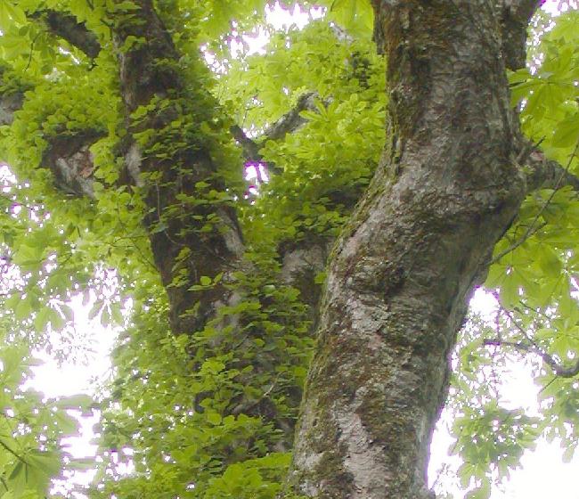 立山の美女平付近の杉やブナの巨木群は、荒々しく、そして優しい。特に、6−7月の緑鮮やかな時期のこの森は、見るものに感銘と安らぎを与えてくれる。。冬は10m近い雪に覆われる豪雪地帯である。この悪環境の中でよくこれだけの巨木に育ったものだと、胸が熱くなる。大切に守られている、神社の杉の巨木とは違うのである。 最初の写真では、この木が如何に荒々しい積雪と戦ってきたか、その悲壮な戦いの様子が見て取れる。幹にぽっかりと空いた大穴は、直径1m以上もある大枝が雪の重みと強風によってへし折られた跡である。木を上から下に辿ってみると、1000年以上と思われるこの木の成長の過程の厳しさが解る。何度も何度も大枝を失っている。 初夏の美女平は、輝くような緑がブナやトチノキの白い樹皮と見事な対比をなして何とも美しい。極楽のようである。しかし、まだ小さな木々をよく見ると、その殆どが横向けに枝を伸ばしている。雪の重みで上に向かって伸びられないのであろう。荒々しい形相の杉も、穏やかな顔をしたブナも、長い年月それぞれに冬を戦ってきたのである。 |