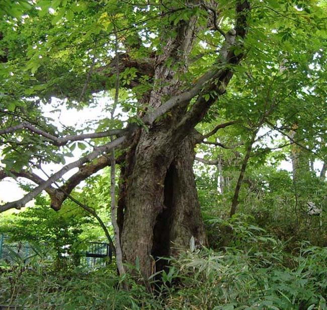 西村さんからの、北海道の巨木もこれで3本目となる。今回はトチノキである。トチノキは環境庁調査で順位の変動が激しい木の一つであるが、送っていただいた木は、樹勢も良く、永く順位を保持しそうである。以下は西村さんによる解説です。 ********************************************************** 函館市の隣にある七飯町(ななえちょう)には巨木が多い。そのうちの一つ、北海道全樹種中3位のトチノキを8月7日に訪問しました。文献にはトチノキとしては全国10位とあります。 函館新道のすぐそばです。昔から湧水のある場所で、町の水道の施設があります。 管理も町の水道課が行っているとのことです。50m×80m位の範囲に、湧水池(エゾアカガエルの産卵池)を中心に原始に近いままの森が残っています。大きな樹はトチノキ、クリ、カツラ、北コブシですが、ほかにもミズキなど多くの樹種が見られます。北コブシは、目測ですが幹周2m近くはあります。こんな大きな北コブシは始めて見ました。飲料水のある場所として神聖視され、大事にされてきた場所であることが分かります。水気が多く、長靴が必携です。 大トチノキは幹周860cm、樹高25m、推定樹齢300年以上、堂々たる体躯で枝の張り出しも立派で葉もふさふさと大きく、葉の虫食いも見られず健康そのものと言う感じで、文 句無く森の主です。根本には空洞があり、大人が立ってくぐり抜けられます。空洞の中をよく見ましたが、腐った部分はありません。頑健そのものです。たっぷりとした水分補給と、周囲に生い茂る木々達に守られた位置取りがこの巨樹を健康にしているのでしょう。静かな森の中で気持ちの良い空気を吸いながら、巨樹と対話しつつ1時間ほど過しました。森の周囲は畑と道路と廃土置き場です。2年前には函館新道が数m隔てて作られました。巨樹をめぐる環境がこれ以上悪化しないよう祈りながら帰路に着きました。 七飯町までは函館からJRやバスがあります。本町が町役場のあるところで、役場からは徒歩10分くらい、ちょっと分かりにくいところですが役場で道順を教えてくれます。私にメールを下されば地図を書き送ります。 mnisi@abox22.so-net.ne.jp 西村 ********************************************************** 七飯町役場は、JR函館本線の七飯駅で降りて、北北東800mの所にある。木のある桜町へはここから北に10分ほど歩く。なお、環境庁の調査によれば、かつて北海道1位とされていた「名寄のミズナラ」が倒壊したため、「七飯の大トチ」が1位となっている。しかし、先々回に西村さんからお寄せいただいた「小金湯温泉の大桂」は10.5mの幹周があり、こちらが本当の北海道1位と言うことになる。最下段に幹周の定義や、それについての感想を書きました。 |