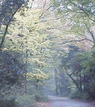 今年は、12月中旬になってカエデの紅葉が鮮やかになってきた。 暖かい秋のせいで、珍しい光景である。いつもなら、黄色の落葉樹と赤のカエデが きれいな対比を見せるが、今年は黄色の落葉樹がすっかり散ってしまった後に、 常緑樹をバックにカエデの赤・黄が映えている。