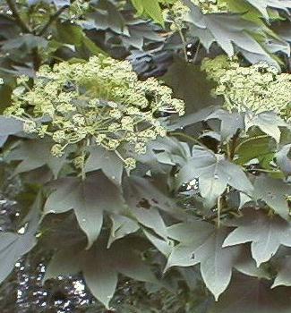 2.新芽の天ぷらは、山菜料理として最高。8月に花を付ける落葉高木。