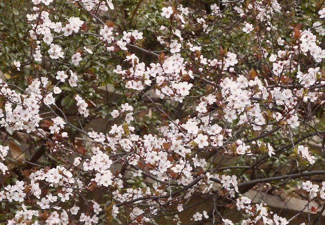 早い桜がもう咲いていると思ったら、スモモの花だった。大阪府立都市緑化植物園に入る並木には、色々な花木が植えてあり、ここに満開の木が数本見られる。花と同時に出る葉が赤みがかっているのでこの名が付いたのであろう。別名をアカバスモモとも言う。花は白いが、葉が赤いので、遠目にはピンクの花が咲いているように見える。3月中頃から咲き始める。 サクラに比べると花はやや疎らで小さく、頼りなげであるが、実の方はサクラより大きく、黄色く熟したものは食用になる。中国から古くに渡来した。 学名はPrunus cerasifera Ehrh. var. atropurpurea Baileyで、バラ科サクラ属である。 ********************************************************** BruxellesのMHさんから素敵な「ベニバスモモの並木」の写真が届いた。EUの中心地であるベルギーのブリュッセルはグラン・プラスに代表される歴史的風景や美味しいチョコレートのある魅力的な町である。市の北部には広大なベルギー国立植物園もある。送っていただいた写真の道は、ヨーロッパの住宅街を走る典型的な石畳の道で、落ち着いた感じと満開のベニバスモモの花がしっくりと解け合っている。羨ましい風景である。 |